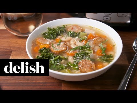 Slow-Cooker Sausage & White Bean Soup | Delish - Slow Cooker Italian Sausage White Bean And Kale Soup - This soup will cure all your winter blues. INGREDIENTS 1 tbsp. olive oil 4 precooked sausages, such as andouille, sliced 2 (15-oz) cans white beans 2 garlic ...